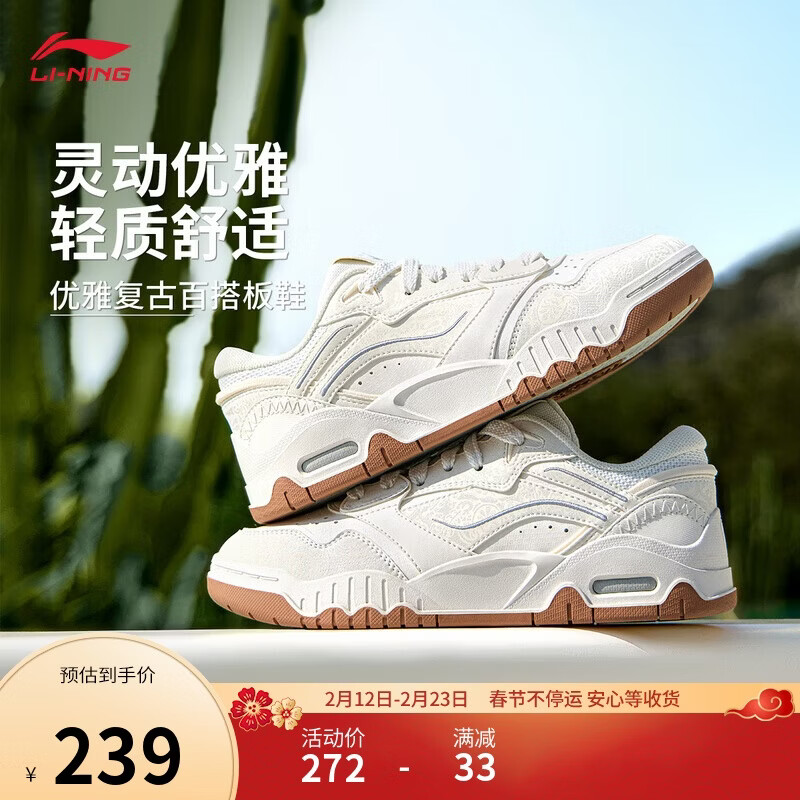 李宁天迹丨经典小白鞋女鞋春夏季板鞋减震回弹简约百搭运动鞋AGCU096
