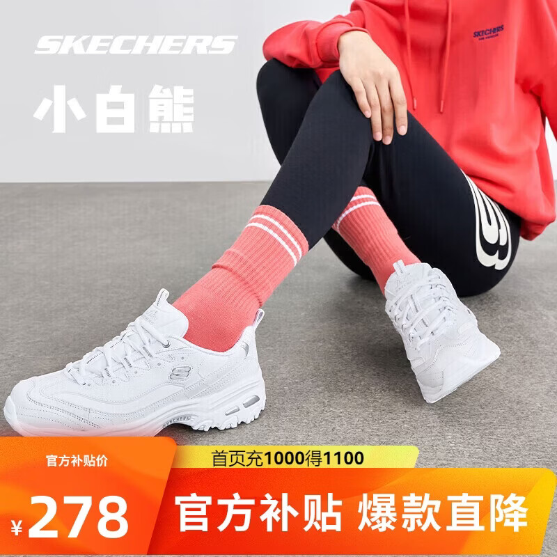 斯凯奇新年礼物小白熊|女鞋春季透气小白鞋增高复古老爹鞋运动鞋11931