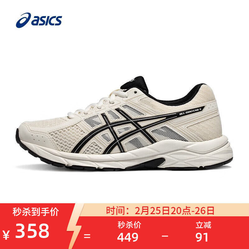 亚瑟士ASICS女鞋网面跑鞋百搭缓震运动鞋透气跑步鞋 GEL-CONTEND 4 米白色/黑色 38