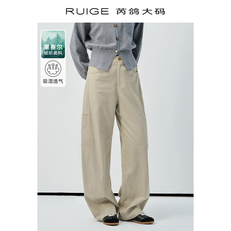 芮鸽大码女装卡其色高腰牛仔裤新款莱赛尔阔腿裤秋季宽松微胖裤子 榛影棕 L