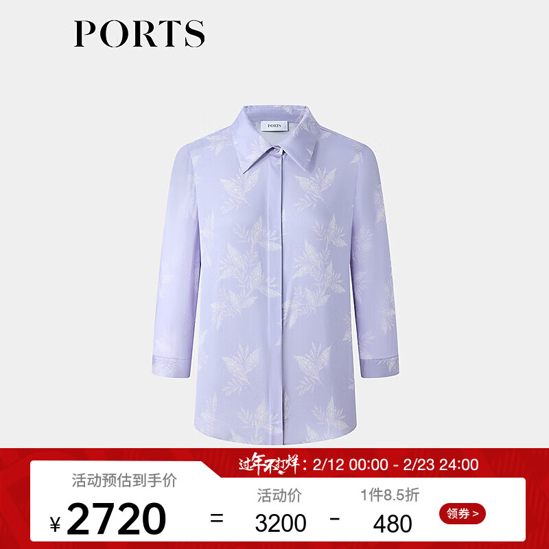 PORTS宝姿2025年春夏新款女装短袖衬衫LQ8B092VPT014 浅丁香紫印花 XS 2