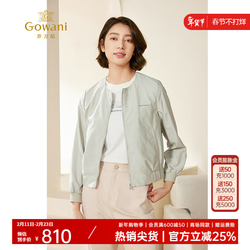 乔万尼休闲工装风短外套女2026新款春秋圆领女装运动风上衣EM3B423 百合绿 2XL