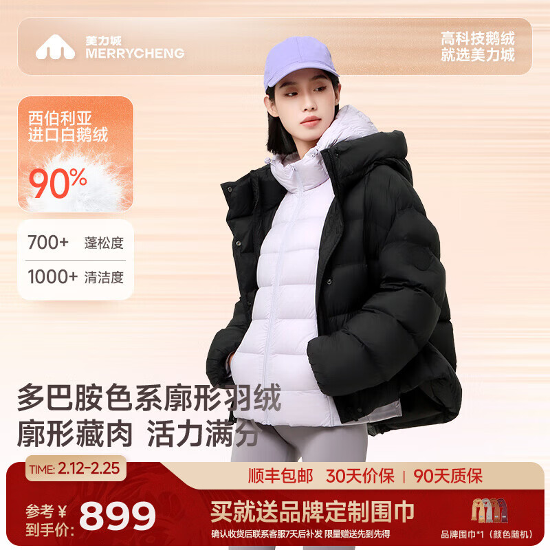美力城卓沅同款|暖天鹅泡芙鹅绒女装短款保暖外套休闲风潮流韩版新款108 钛金白 S (100-110斤)