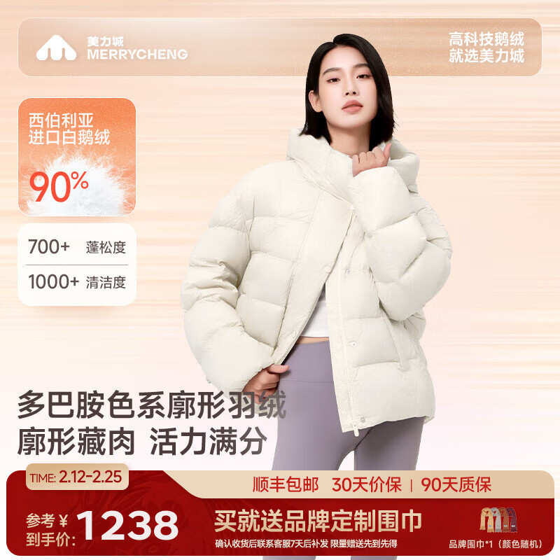 美力城暖天鹅羽绒服女装短款极地鹅绒百搭保暖外套108 钛金白 S