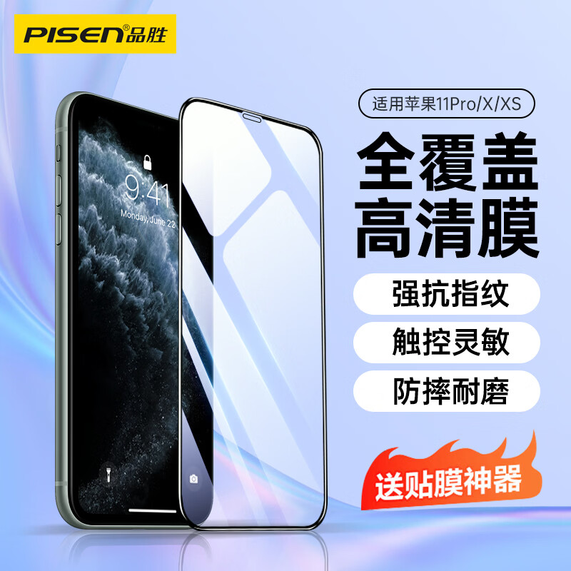 品胜 适用IphoneX/XS/11Pro5.8英寸手机膜 全屏硬边苹果X/XS/11Pro全覆盖高清屏保 单片装