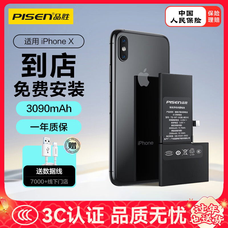 品胜 苹果X手机电池【到店免费安装】3C认证 iphoneX电池超续航版3090mAh 苹果手机内置电池更换