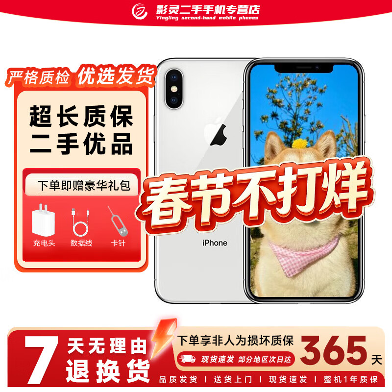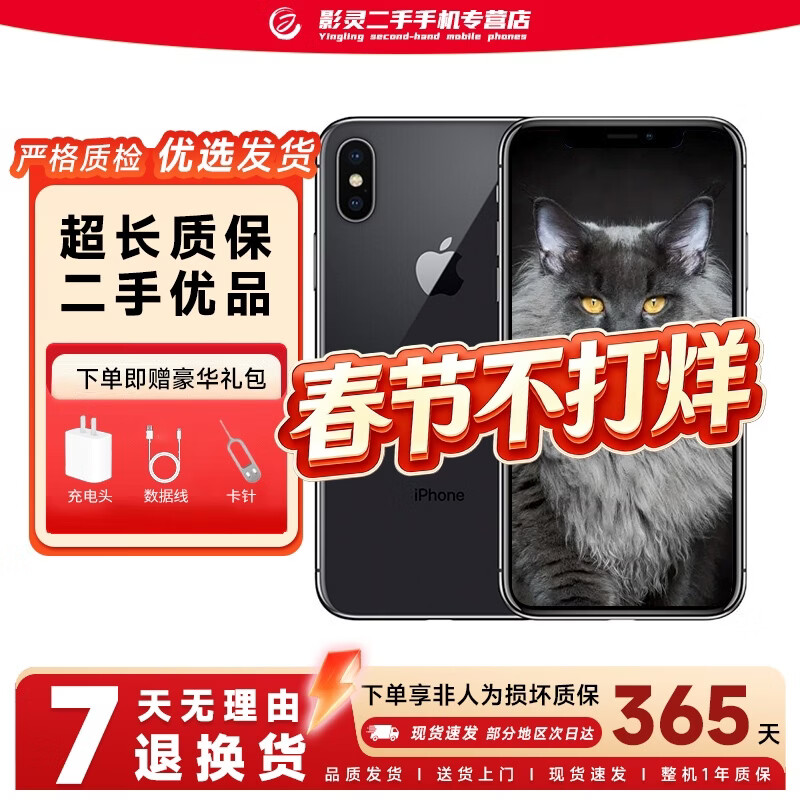 苹果X 二手苹果手机 Apple iPhoneX 全网通 游戏拍照手机 二手手机 银白色 9新 256G全网通【更换100%电池】