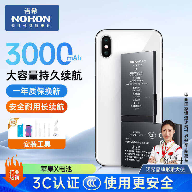 诺希 适用于苹果X电池【3C认证 | 自主安装】iphoneX手机内置电池更换 3000mAh大容量
